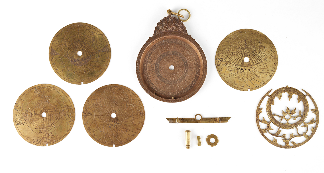 The mariner’s astrolabe was an important navigational tool for finding latitude. It is a simplified version of the traditional astrolabe – an instrument that could help tell time, find altitude, and find latitude. The mariner’s astrolabe measures the height of the sun or a star above the horizon. Used with star and planetary charts and tables, the observer can find their latitude. Astrolabe history begins in ancient Greece. Many scholars credit Hipparchus, an ancient Greek astronomer and mathematician, with the invention of the astrolabe.2 The first major writer on the description and construction of astrolabes was ancient astronomer Claudius Ptolemy. He gave much detail about the earliest uses of the instrument it in his writings called Planisphaerium. Although ancient Greek astronomers developed a version of the astrolabe, the instrument was highly developed and used extensively in the Islamic world by the 9th century.3 The astrolabe was very valuable in the Islamic religion. It helped determine the astronomically defined prayer times, and was an aid in finding the direction to Mecca – Islam’s holiest city. In its earliest use, the astrolabe was used some for travel over land, for astronomy – the study of the stars – and for telling time, but not necessarily for water navigation. These were planispheric astrolabes. These astrolabe was introduced to Europe from Islamic Spain (al-Andalus) around the early 12th century.